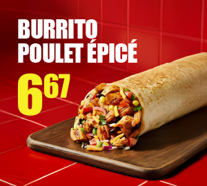 Faites monter la chaleur avec une saveur audacieuse. Découvrez le burrito au poulet épicé à 6,67 $, offert pour une durée limitée.