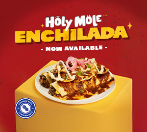 Holy Mole! Savoury fillings, refried beans & jalapeños wrapped in flour tortillas, covered in our signature mole, chips & a blanket of melted cheese.